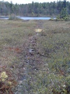 game trail April 29, 2013 / Ellen Kolb This distinct game trail runs across the boardwalk, between the bog and nearby scrub.