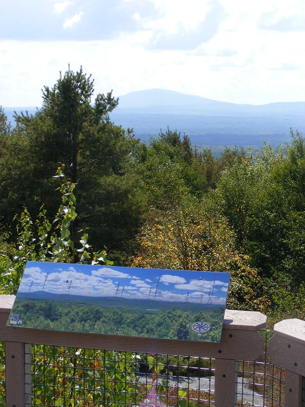 The Gregg Trail is accessible from the trailhead at Crotched Mountain hospital and rehab center in Greenfield (not the ski area, which is on the other side of the mountain in Bennington). It’s a wheelchair-accessible path to a wonderful western overlook toward Monadnock. Even on a hazy day, it’s a pleasant walk. Past the overlook, trails continue to the summit ridge, though I didn’t go that far this time.