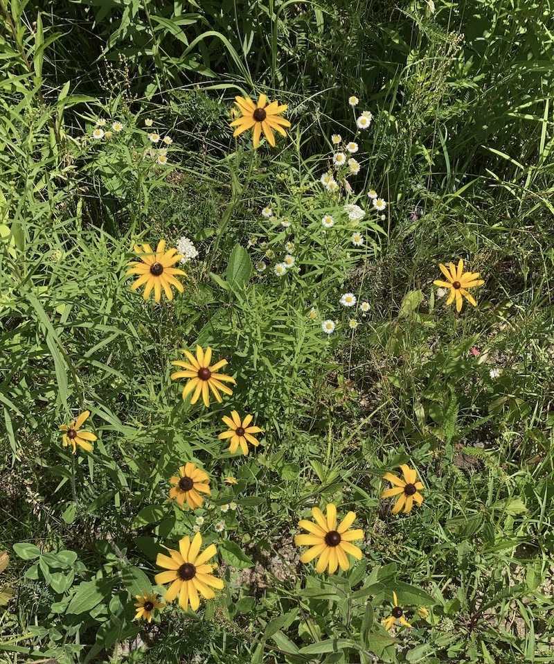 Cheshire County: Rhododendron State Park in Fitzwilliam had a fairly tame annual bloom this year in July, but even the few blossoms on the giant shrubs made a pleasing sight. After a walk through the shady rhododendron grove, I continued a mile down a road just outside the park, finding my way to Rockwood Pond and the Cheshire Rail Trail. Black-eyed Susans, Monadnock in the distance, and a retired rail excursion car on display along the rail trail: a lot of variety for one afternoon’s rambling.
