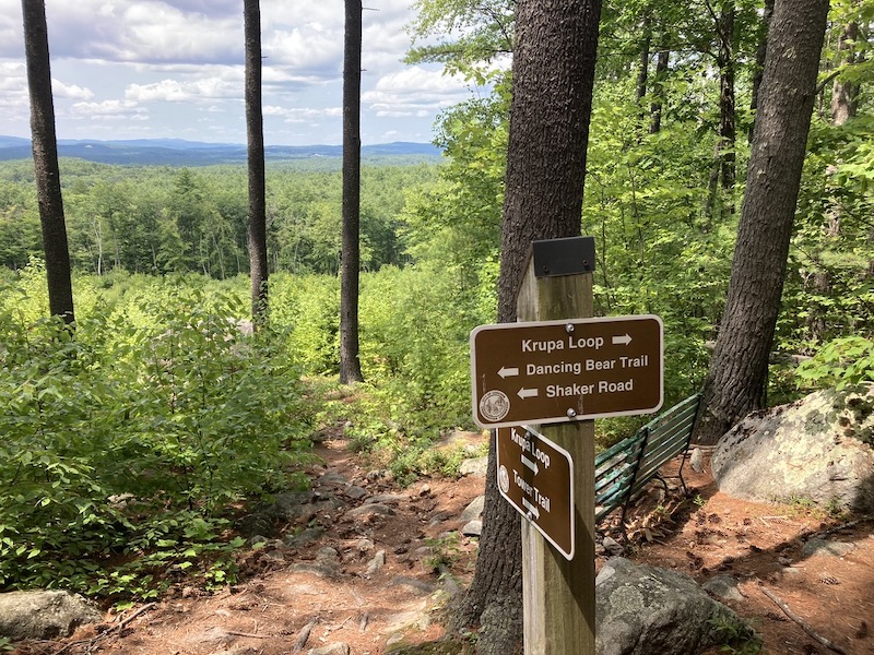 Concord: I usually head straight up Oak Hill’s two-mile trail to the fire tower, but this time I explored side trails and spurs all over the hill. At the fire tower, hazy skies muted the panorama somewhat, but the breeze on a tower’s top landing always feels great on a hot day. I lucked into finding a fire spotter on duty, so I got to visit the cab for a few minutes.