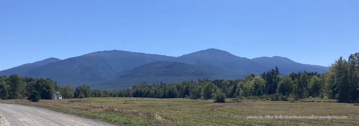 The xNHAT – I’ll use the abbreviation favored by the trail’s founder, about whom more in part III – includes much of the PRT, but also a quiet residential unpaved Jefferson road called Valley Way. That’s where I got my sunburn. It’s also where I had all the views of the Presidential Range that were missing the day before.
