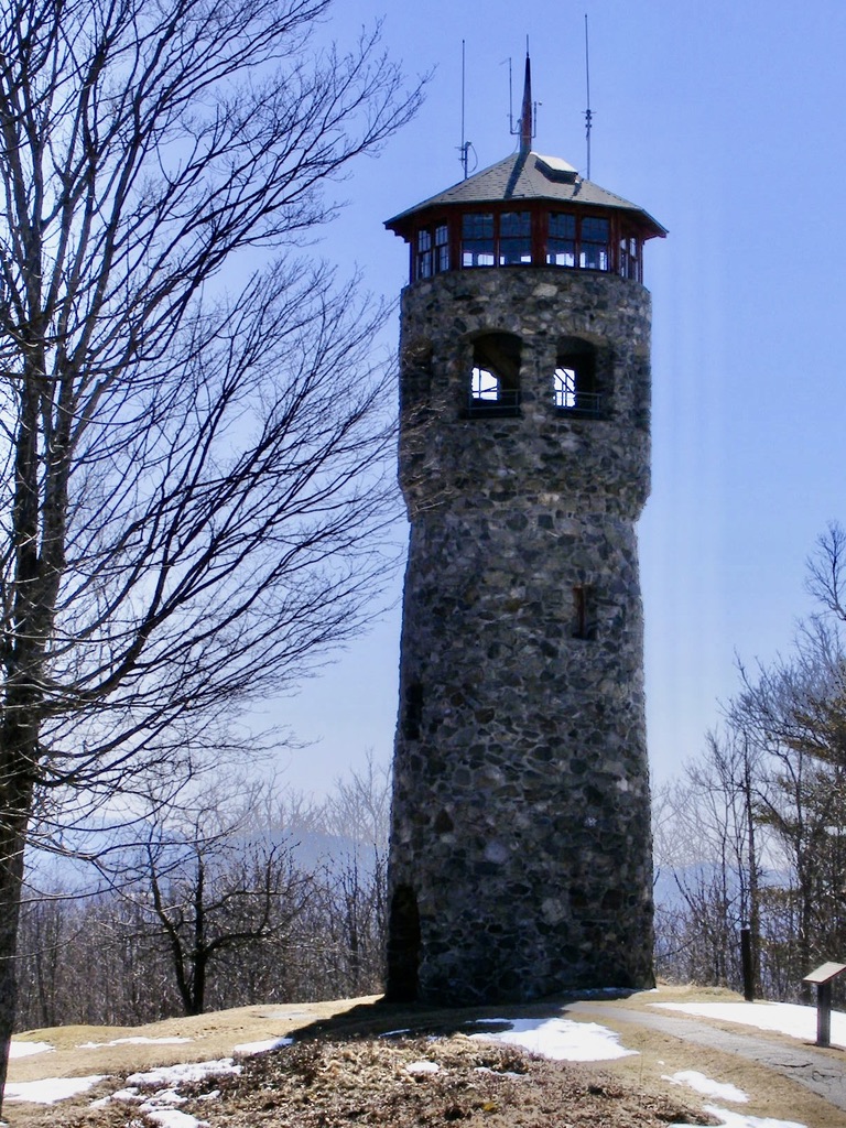 It’s about 500 feet of vertical rise from the trailhead to the tower, with a gentle grade. The hike took me 50 minutes each way, and a more fit walker could undoubtedly cut that time considerably. The full trail network on the hill covers about 7 miles, so a hiker could easily spend a day exploring the area. There are no toilet facilities at the trailhead.