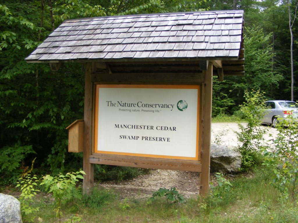 Kiosk at parking areaLily, Manchester Cedar SwampGiant rhododendronRhododendrons in white and palest pink