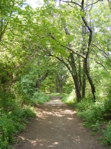 Cool & shady path connecting shore trail with paved bike trail